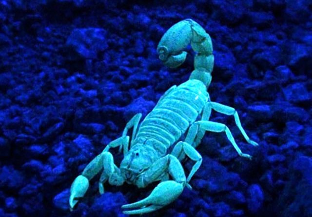 Read MoreEl brillo cian de los escorpiones bajo luz ultravioleta tiene una fuente psicodélica.