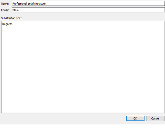 Con el programa podrás ingresar frases de uso frecuente de forma sencilla en cualquier entorno que te permita copiar y pegar texto (por ejemplo: el Bloc de notas de Windows, Microsoft Word o cualquier otro editor de texto). La herramienta detectará la frase (keyword) y la reemplazará con el fragmento de texto asignado a esta.