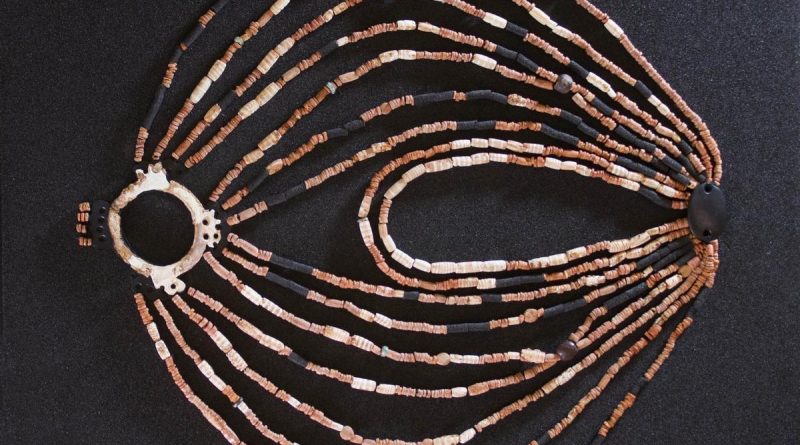 Read MoreAsociado a un enterramiento infantil, sus cuentas están decoradas con incisiones y pintura roja.