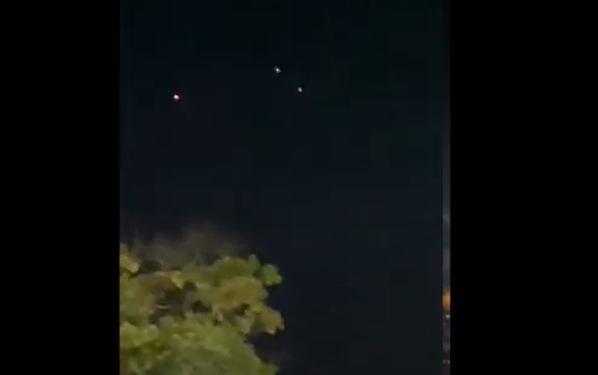 Una luz roja parece conducir a otras dos hacia la derecha antes de que se muevan lentamente en una formación triangular.